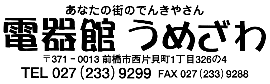 |  | パナソニックは家まるごとを提案いたします。 家電製品のお困り事は「電器館うめざわ」まで |